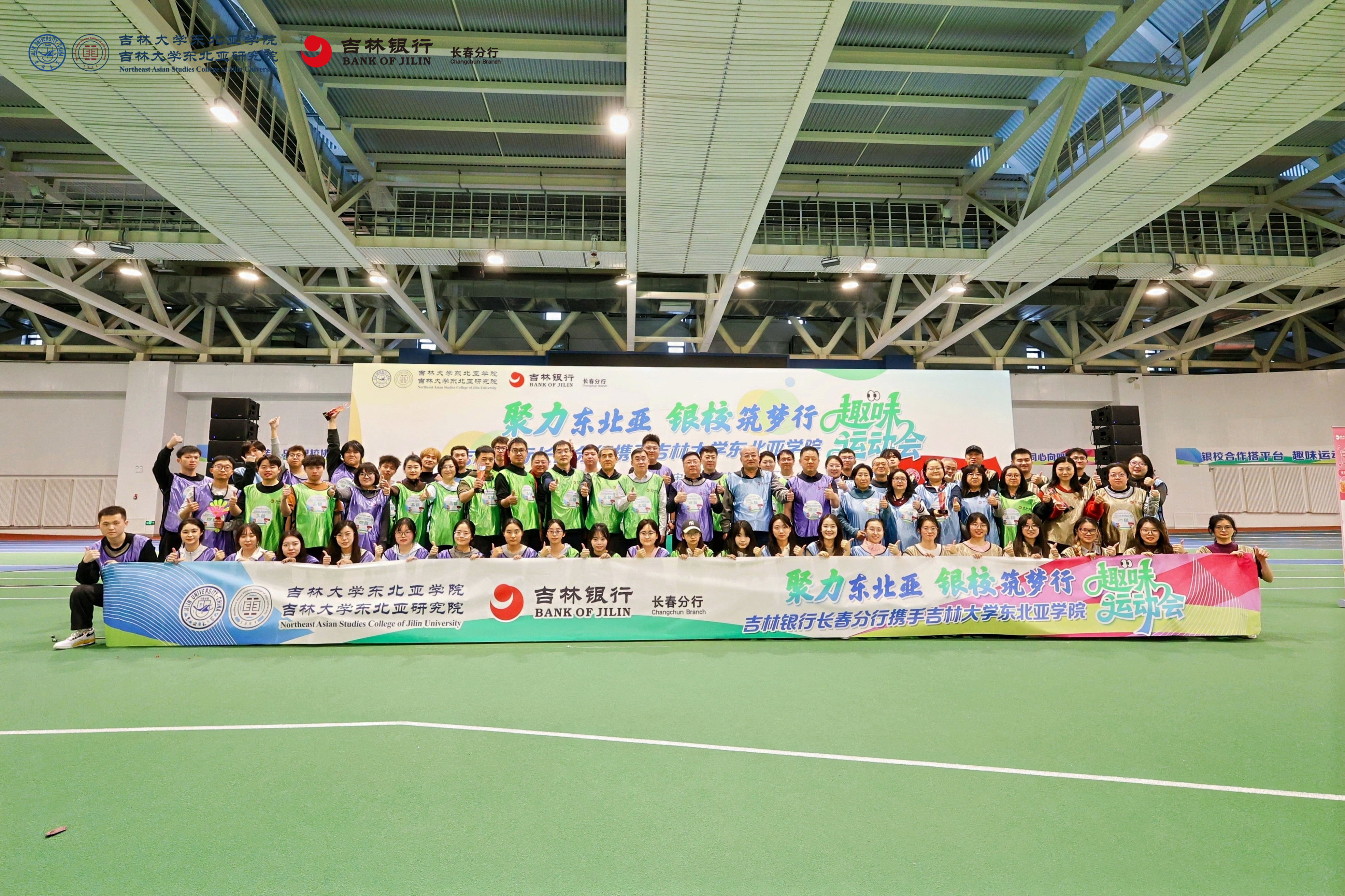 2025年11月20日下午,吉林大学东北亚学院与吉林银行长春分行携手举办的趣味运动会在宋治平体育馆四楼田径场热烈举行。本次活动以“聚力东北亚 银校筑梦行”为主题,吸引了80名师生踊跃参与,现场气氛热烈,欢声笑语不断。
