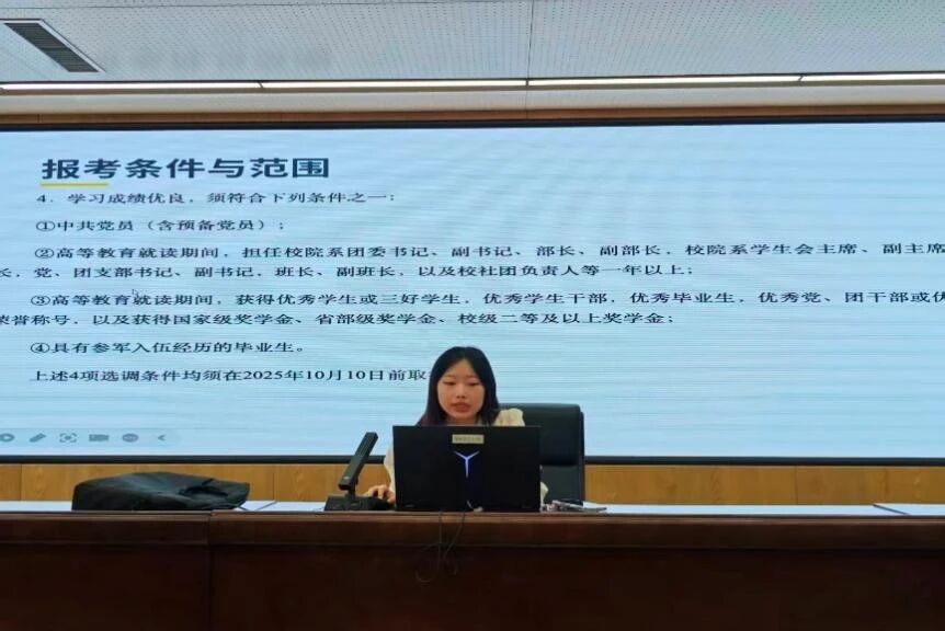 刘佳学姐结合自身备考经历,系统介绍了吉林省选调的报考条件与范围,详细拆解了笔试阶段行测与申论的备考策略,并梳理了面试环节的基本流程与注意事项。她特别强调了备考时间线的重要性,建议同学们分阶段设定目标,稳步推进复习进度。王禹龙学长围绕吉林省选调的报考形式与备考要点展开分享,重点剖析了如何在备考过程中锚定方向、避免盲目跟风。他从题型特点入手,结合自身复习节奏,分享了资料选择、模块突破与心态调适方面的实用建议,帮助同学们建立起更为清晰的备考框架。韩再赓学长则聚焦中央选调,梳理了从报名流程到考试条件的全链条信息。他结合中央选调的岗位特点与选拔标准,提醒同学们在关注自身条件匹配度的同时,也要注重综合素养的长期积累,以扎实的准备应对更高层级的选拔要求。